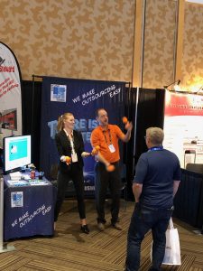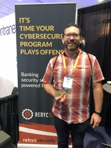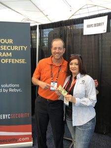 Speaking of booths, Patrick and Keith, our co-founders, spent a lot of time at both shows in the booths. At total of close to 40 hours – that’s a lot of great cybersecurity testing discussions, eating, staying hyrdrated, handing out Rebyc Security swag and putting for dough. Patrick even found some time to give out juggling lessons to the surrounding booth mates at the SEC.